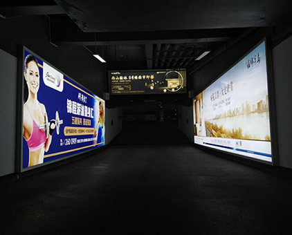 停車場(chǎng)室內(nèi)廣告拉布燈箱—該項(xiàng)目由我司提供鋁型材、LED燈、畫面以及技術(shù)安裝指導(dǎo)(不含安裝),全部燈箱都以墻面壁掛式展現(xiàn),燈箱安裝的完成的同時(shí)普通的停車場(chǎng)也升級(jí)形成了一道亮麗的廣告風(fēng)采!